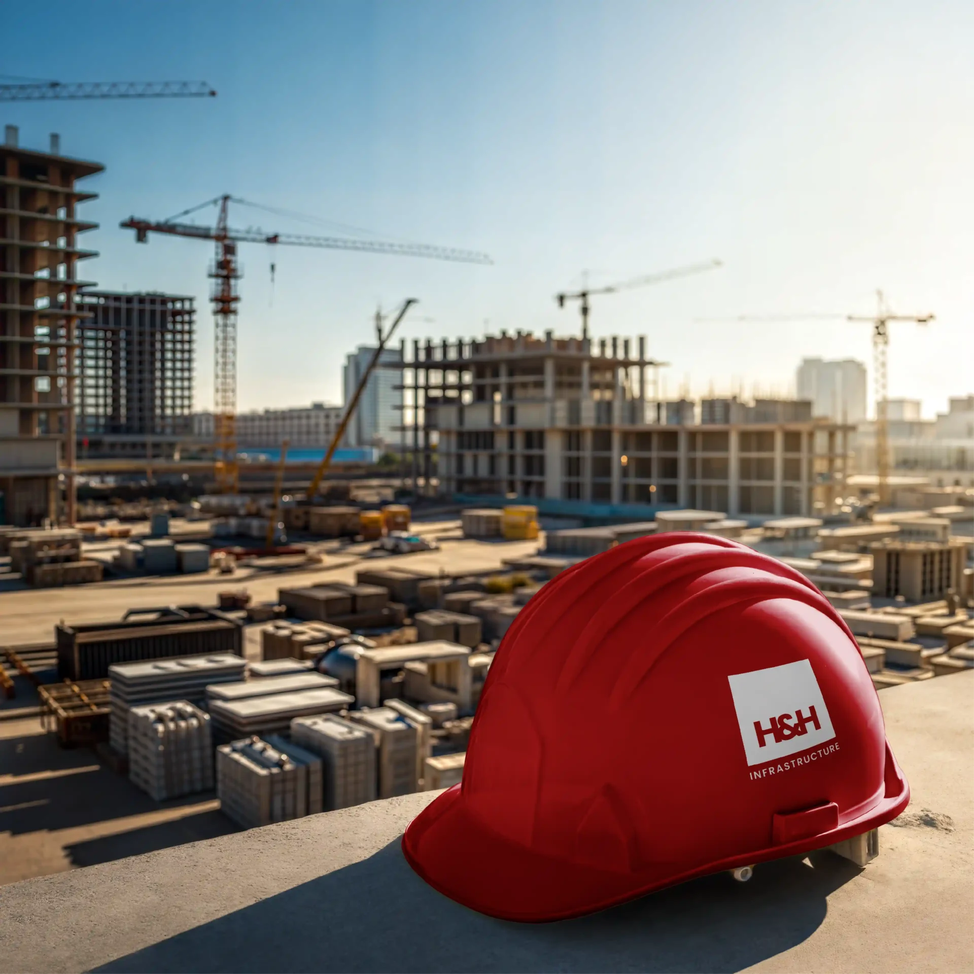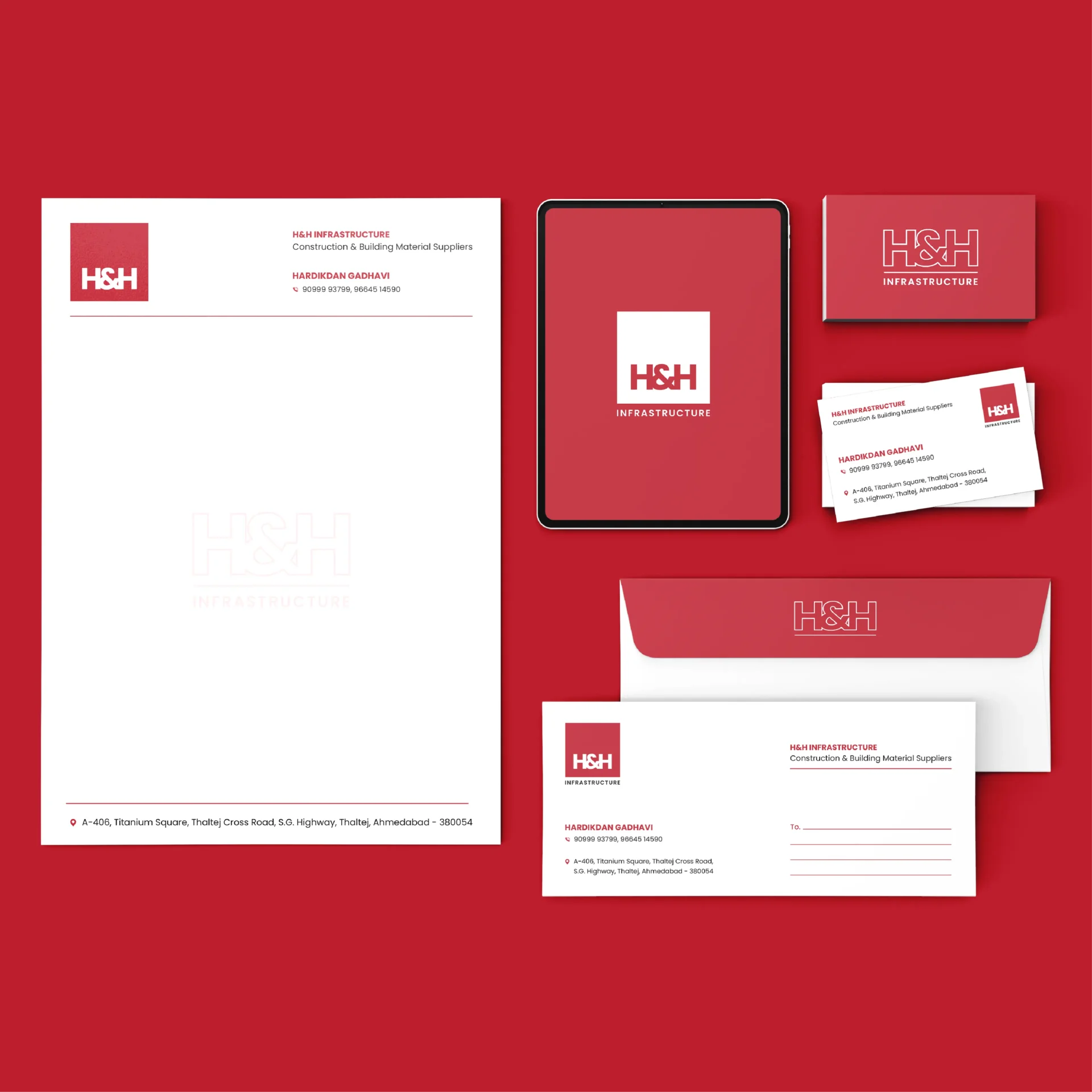 H&H Infrastructure is a modern construction and building materials brand created to represent strength, reliability and progressive infrastructure development. The brand reflects a professional approach to construction-focused services, combining practical execution with a bold visual identity that feels trustworthy and future-ready.