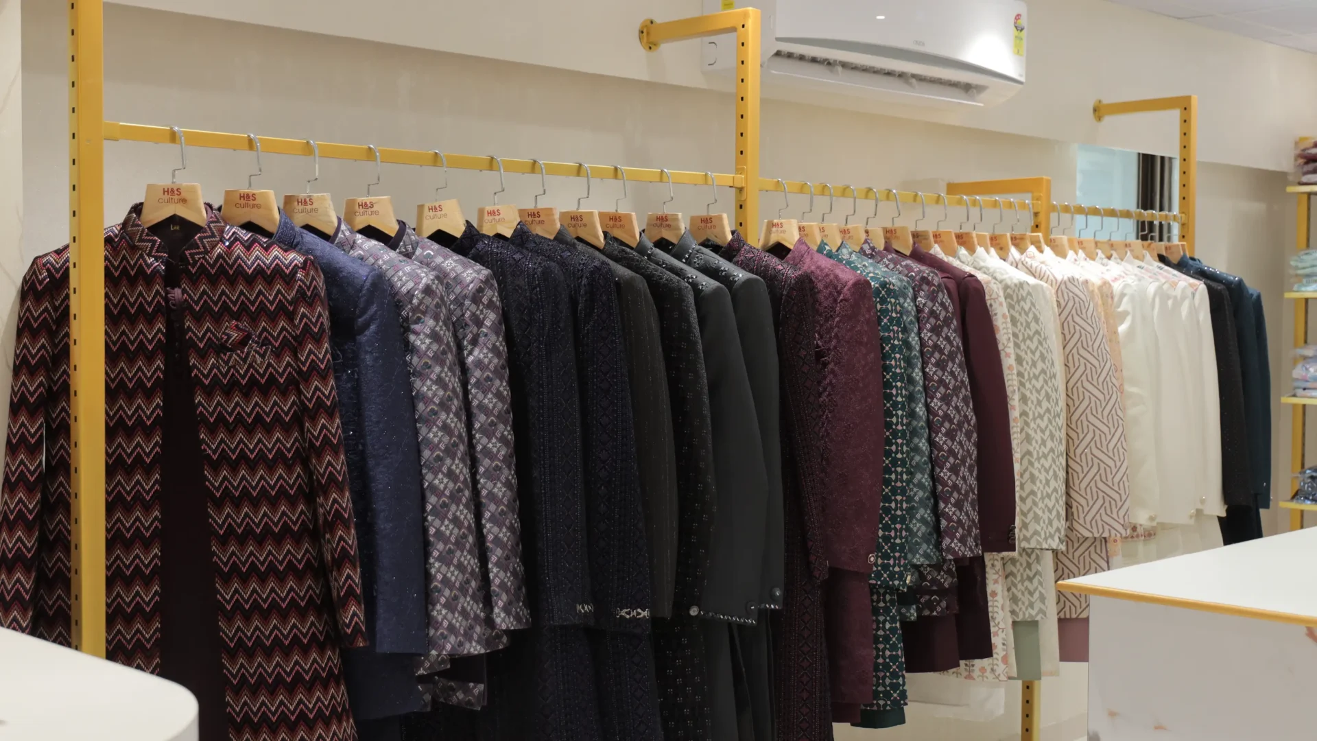 Our H&S Culture Showroom Photography project captures premium menswear displays, elegant interiors and branded retail styling, highlighting the store’s luxury atmosphere and visual identity.