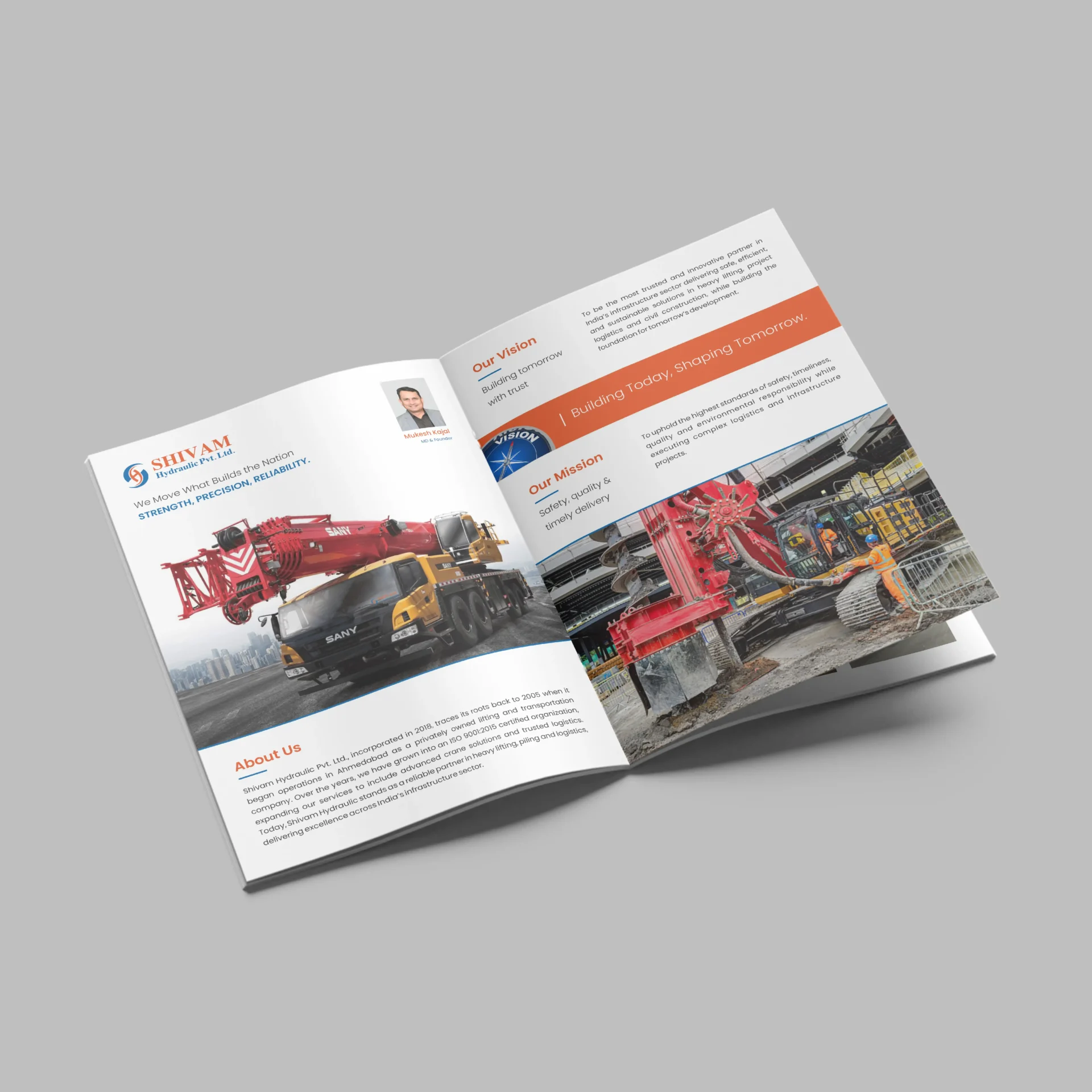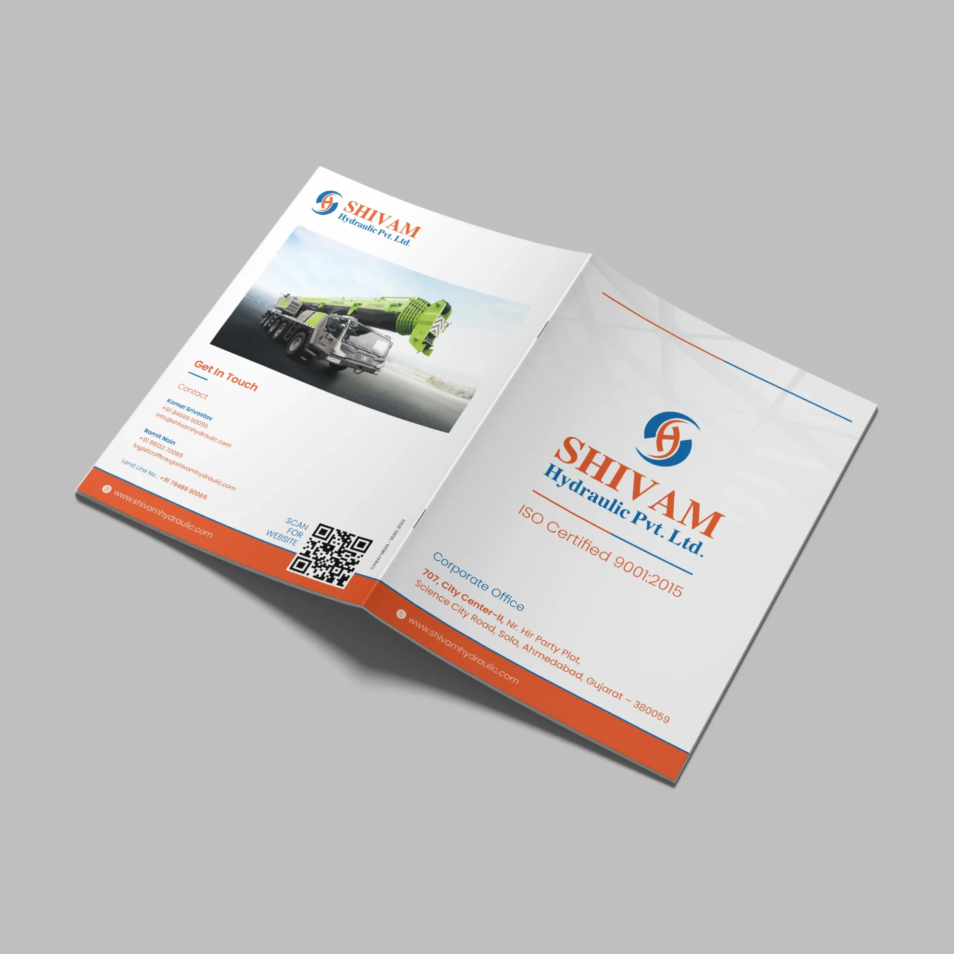 http://Corporate%20brochure%20cover%20design%20for%20Shivam%20Hydraulic%20Pvt.%20Ltd.%20featuring%20clean%20branding,%20ISO%20certification%20details,%20and%20a%20minimal%20white-orange-blue%20layout.