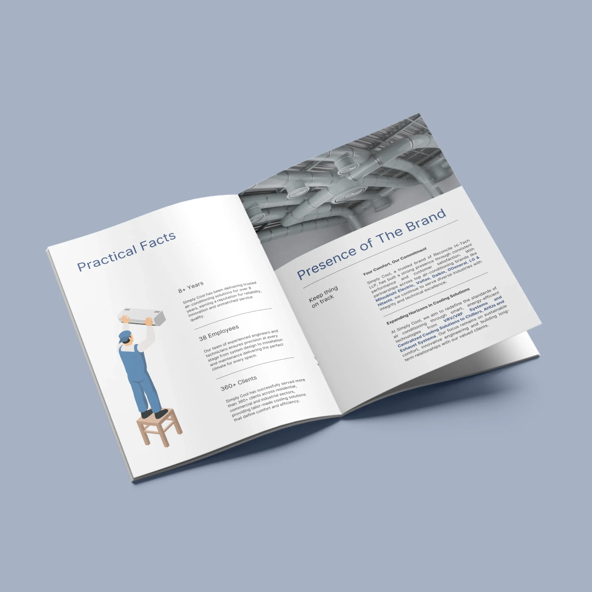 http://Corporate%20brochure%20cover%20design%20for%20Simply%20Cool%20featuring%20HVAC%20branding,%20minimal%20typography%20and%20architectural%20line%20illustration.