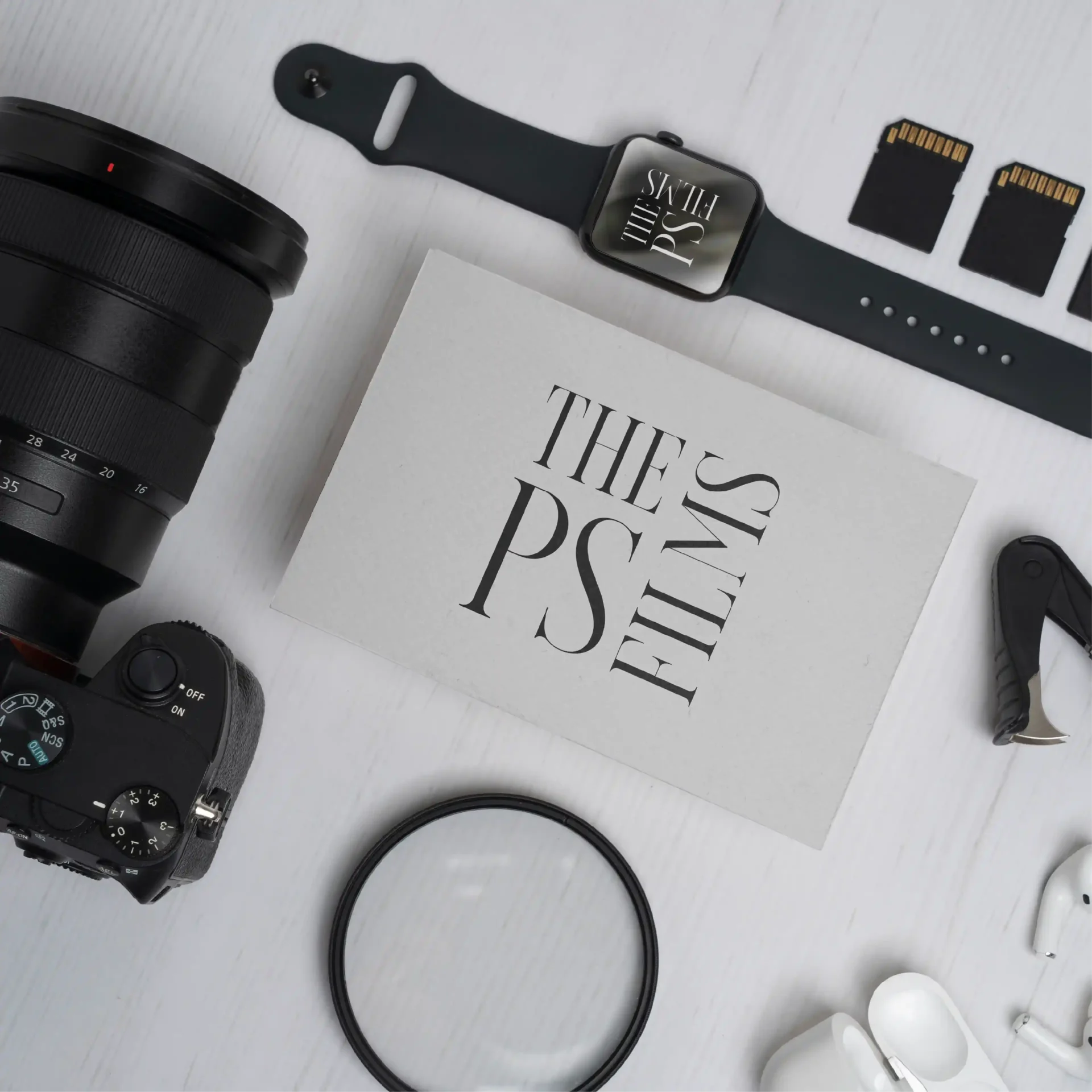 The final identity gives The PS Films a polished presence across stationery, promotional materials, branded accessories and digital visuals. Building a cohesive brand image rooted in creativity and timeless storytelling.